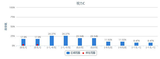解析:C柱径值在(-0.5,-1)范围内屈光度疑似异常,被测儿童眼睛C柱径值处于正常范围,目前大概17.8%的儿童处于该范围内。