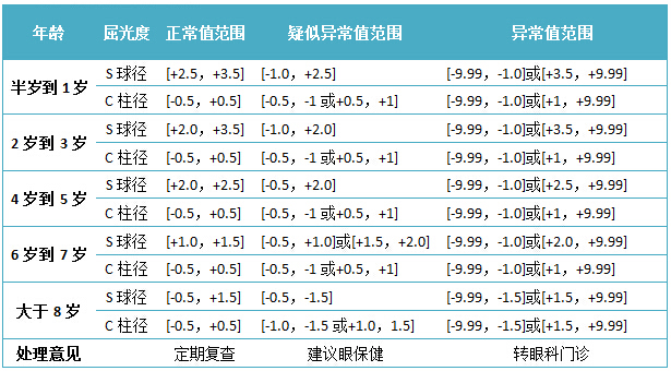 以2岁儿童为例,如果他的检查结果为左眼S+4.5,C+0.8,右眼S+2.4,C+0.8,表明儿童的左眼有可疑异常,右眼未见明显异常,建议平日注意做好眼保健工作,均衡饮食,养成良好的用眼习惯,防止屈光度向异常转化。